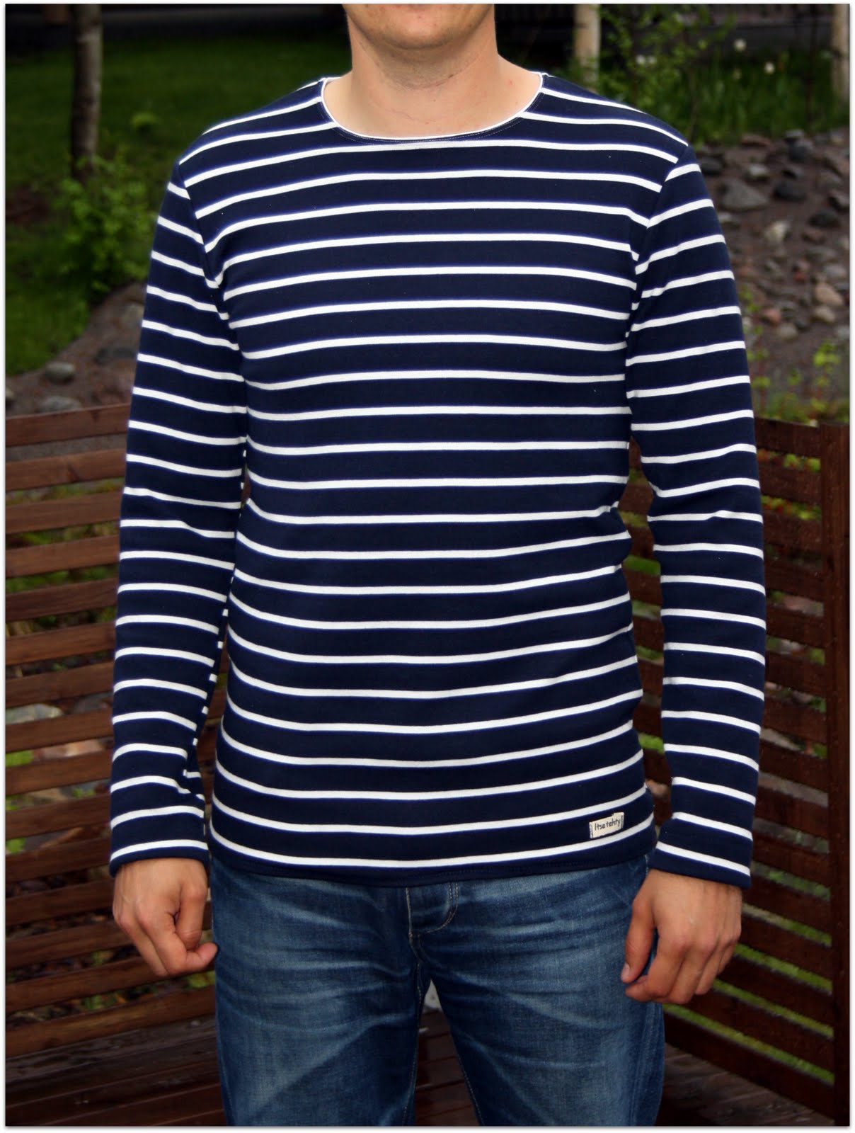 Kysyin eilen, onko perheen herrasväellä jotain vaatetoivomuksia. Mies toivoi uutta pitkähihaista. Yhtään pitkähihaista en ole miehelle vielä tehnyt, joten päätin kokeilla. Laitoin tilaukseen kivaa kangasta, mutta halusin tehdä testiversion ennen kuin silppuan kalliimpaa kangasta. Kaavaksi valikoitui joku Ottobren poikien paidan kaava (170cm), jolla olen aikaisemmin tehnyt pari t-paitaa onnistuneesti. Kankaana on Eurokankaan palalaarista kaivettua mukavan pehmeää ja joustavaa trikoon ja collegen välimuotoa. Löysin sitä halvalla iiiison palan ja se sopi tähän tarkoitukseen hyvin. Lopputulos on erittäin onnistunut, myös miehen mielestä!
